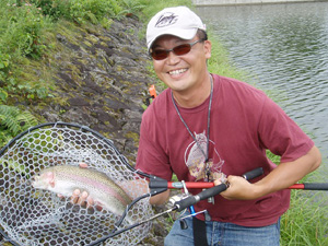 中村英一 エリアトーナメント最高峰のトラウトキング選手権や管理釣り場.com主催の大会でも常に上位入賞し、多くのアングラーから慕われる兄さん的存在。自身のタックルボックスには常にシークレットカラーなどが入っているが自身のトーナメントにおける「人と違う釣法」が独自性のカラーやチューニングを現実化させる。他のアングラーや仲間たちがこぞって「英一さんのボックスに○○が・・」というくらい気にしている。他メーカーからも参考にされるなど人気急上昇中でアングリングファンなどにも掲載依頼が多い。エリアクランクの人気の火付け役。 |