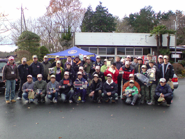 いや〜それにしてもシビレたっ!(笑) 今までに大小色んな試合に出場しましたが、この時期(12月)に、しかも周囲3キロの小さな池で、2185gのモンスターが試合で釣れたってのは、自分でも嬉しい!しかも狙い通りのパターンで、もちろんラッキールアーで獲れたことは自分にとって大きな収穫でした!そして、小さい大会ではありますが最近めっきり遠ざかっていた“優勝”と言う栄誉まで獲得出来たのが嬉しさ2倍。そやけど、今年は色々と苦しい時期もありましたが、おかげさまでなんとか笑顔で正月を迎えられそうですわ(笑) ・大会データ:参加者28名(ウェイン4名のみ、各1本づつ) |